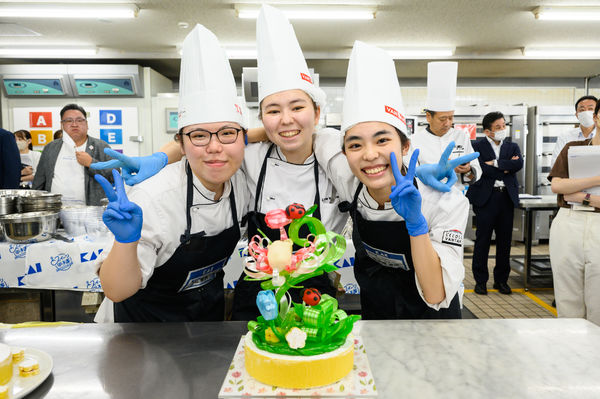 在校生が、毎年エントリーしているのが「スイーツ甲子園 高校生パティシエNo.1決定戦 Supported by 貝印」。産経新聞が主催する、高校生のスイーツ日本一を決定するイベントです。高校生3人1組でチームとなり、お菓子作りの技術とアイデアを競います。2023年9月18日、東京都内にて決勝大会が行われました。レコールバンタンからは、2チームが決勝に進出!